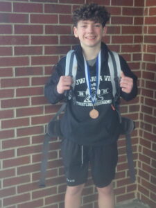 Sheffield’s Logan DeVault earned third place in his weight class at the Pennsylvania junior wrestling state qualifier in the 12 and under division.