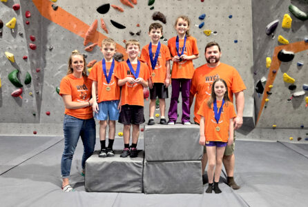 After the champions were crowned, three Elementary Division climbers and three Middle School Division climbers were recognized for their individual achievements. For the Elementary, Eliza Hellman was Rookie of the Year with an impressive 20.2 3-Boulder Average; Lincoln Myers was the Most Improved Climber; and Isaac Myler was the MVP with a season-high 28.1 3BA. For the Middle School climbers, Lottie Curtis was the Rookie of the Year with a 23.8 3BA; Bo Winkels was the Most Improved Climber; and Riley Littlefield was the MVP with an impressive 35.8 3BA.