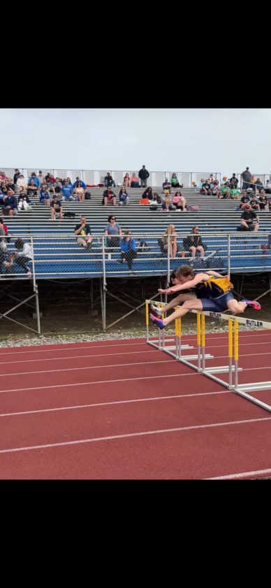 Submitted Photos In photo above, Eisenhower’s Chase Myers, foreground, competes in the 100-meter hurdles at the Butler Invitational on Saturday.