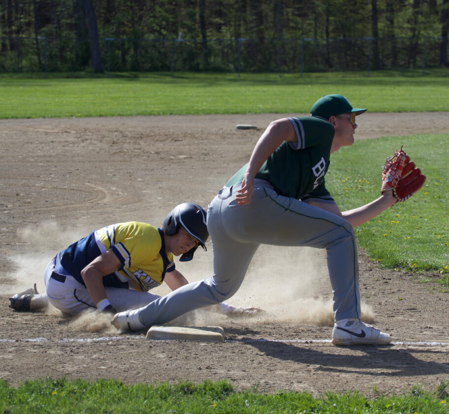 - Times Observer photo by Steve Younger Eisenhower’s Caleb Jakubczak steals third base during Monday’s Region 4 baseball game against Union City at Werner Park in Russell.
