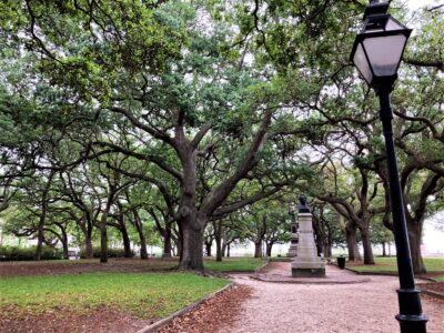 Majestic live oak trees dominate this park. Their branches, covered in green leaves, stretch wide and create a continuous canopy overhead. Aside from the trees, the park appeared sterile. There was an understory of mowed grass and gravel paths. The occasional historic monument rose into the understory. While beautiful, it was not a rich habitat. Or so I thought.