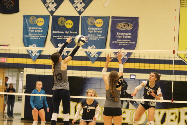 RUSSELL — The Eisenhower volleyball team has been improving steadily all season and Thursday night they put an exclamation point on how much, coming from behind to beat an excellent Erie First Christian Academy team 17-25, 25-17, 23-25, 25-17, 15-11.