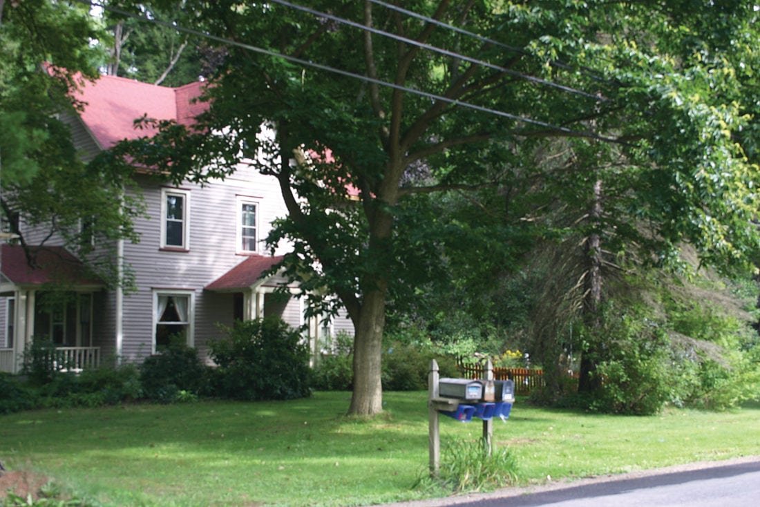 Photo 1: The Fox home at 635 South Main St. in Russell looking in a southeast direction about 1910. Note the Warren and Jamestown trolley on the right edge of the photo on the passing siding on the west side of South Main St. Photo: Courtesy Warren County Historical Society.