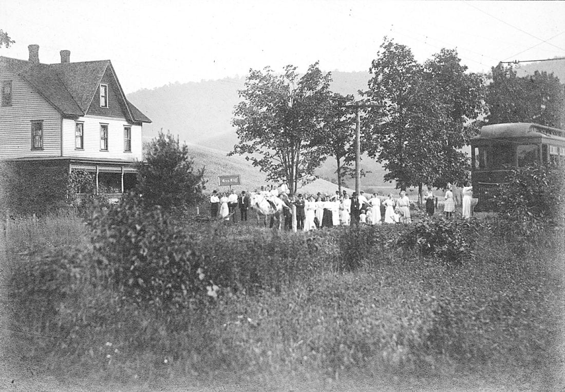 It was commonplace for street railways to be owned and operated by electric companies, which also operated amusement parks located outside of town to increase ridership. Around larger cities, these parks had merry-go-rounds, stages for performing arts and dance pavilions. The Warren and Jamestown did not have an amusement park, but they did have a large picnic area called “Ferncliff” located along the east side of Old Route 62 between the present day west side streets of Sunset Lane and Woodland Drive, including the present-day Ferncliff Drive area on the east side of the road. There was a passing siding on the west side of Old Route 62 between Sunset Lane and Woodland Drive to facilitate loading and unloading of passengers and allow other cars on the line to pass by. Photo 1 shows the home of Hubert Fox at 635 South Main St about 1910, while Photo 2 shows the same house today. A field extended north (left) behind the Fox house for several hundred feet to just short of the property at 525 South Main St. Beyond the Fox house, on the right in Photo 1, a field can be seen which led to a slope down to the Conewango Creek where visitors could swim. My neighbor, who was raised in the Fox house and remembers Ferncliff, tells me that there were a number of picnic tables and a pond had been dug for fishing. Another neighbor, who lives up present-day Ferncliff Drive, has found lots of clam shells in the soil while digging in his yard.