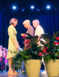 - Kim Scoma receives her nursing pin from her mother, Kathleen Anderson, who graduated from the JCC Nursing Program 40 years earlier; as Kim’s father, Bruce Anderson, looks on.