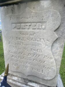 According to Schenck’s History of Warren County, Porter was the son of Judge William Siggins (he was justice of the peace for some years) and his wife, Polly Wilson. Both were “from the north of Ireland” and they had 12 children – eight sons, four daughters.
