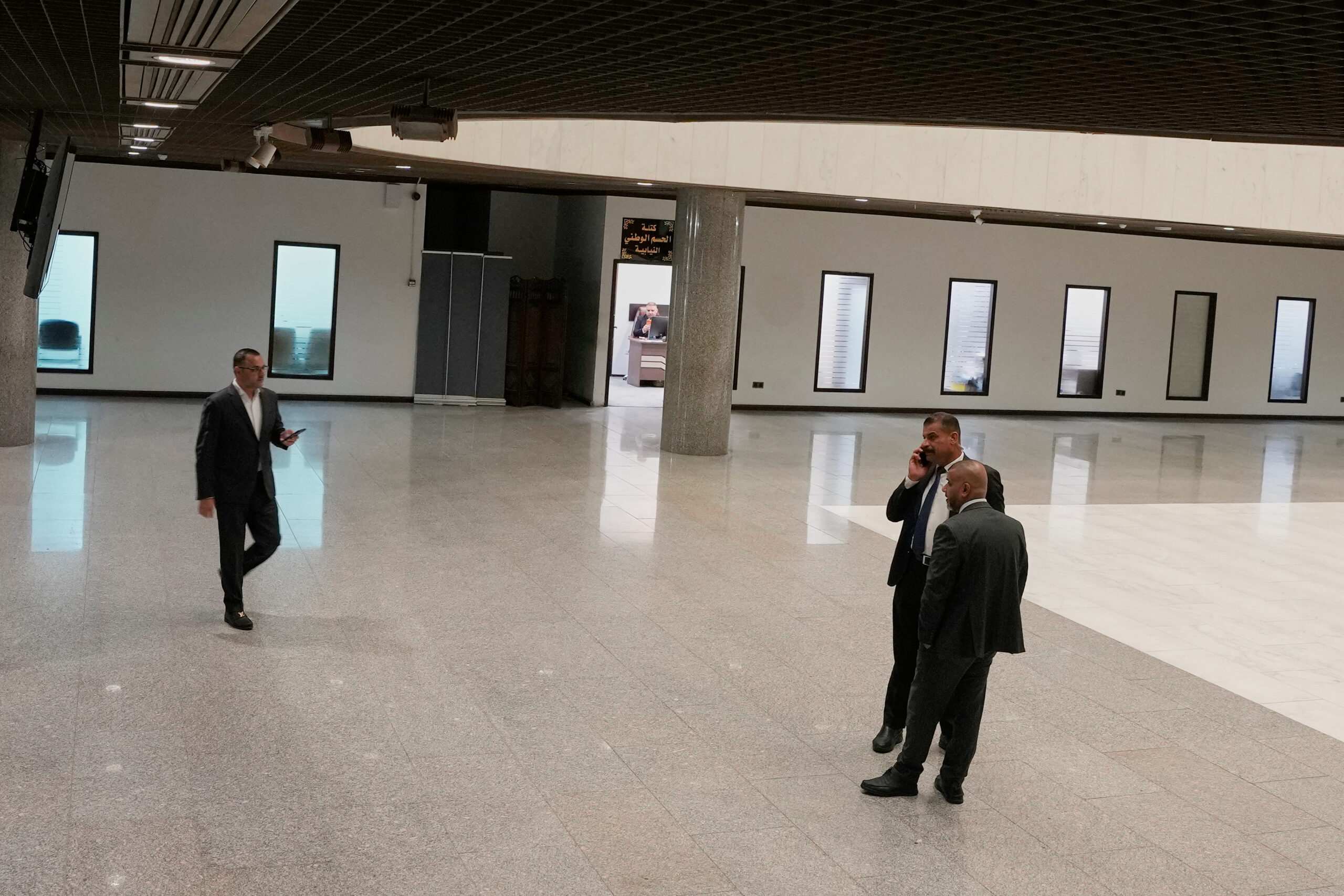 Members of the Iraqi parliament appear before entering the parliament hall to elect the President of the Republic in Baghdad, Iraq, Saturday, April 11, 2026. (AP Photo/Hadi Mizban)